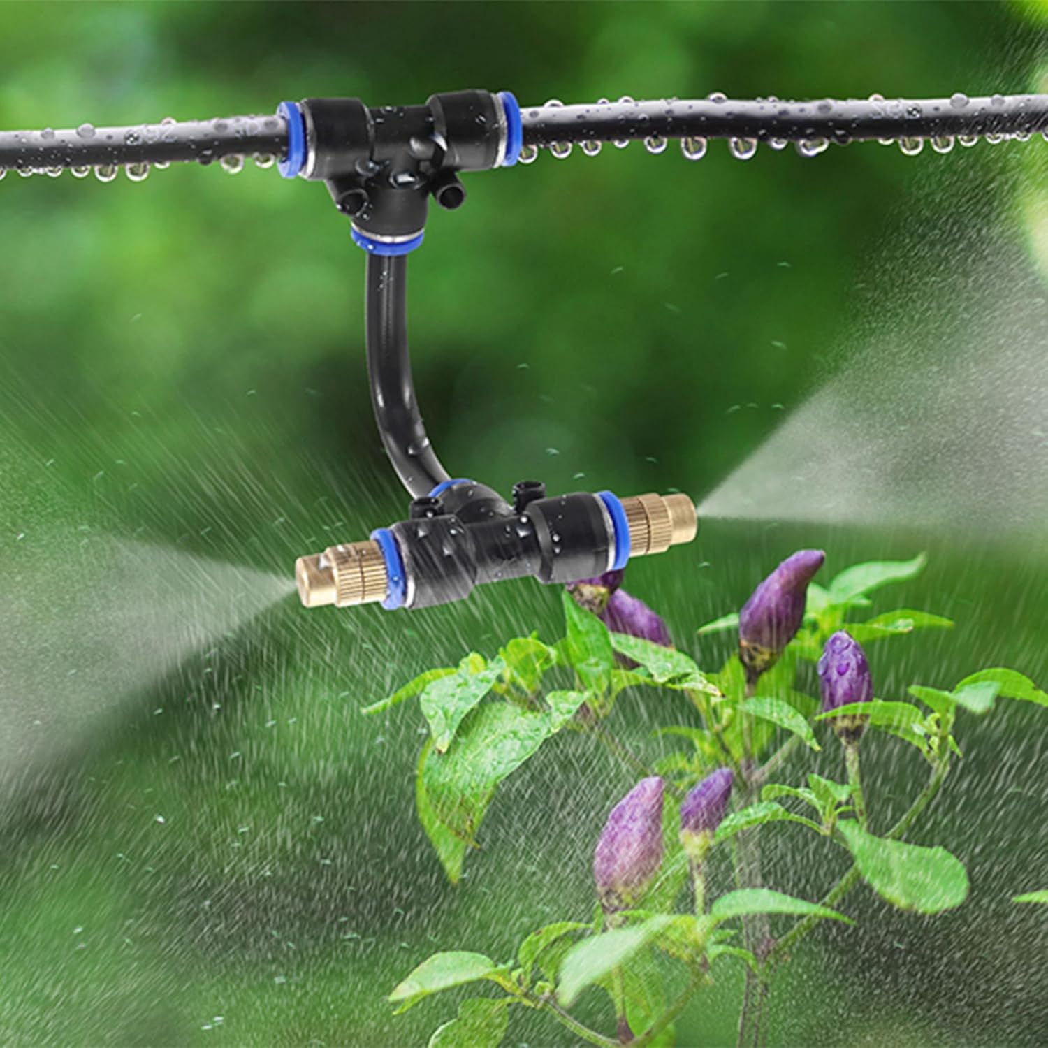 - 【Energy Conservation】: The thread misting nozzle can quickly connect with the 0.32inch/8mm tubing by sliding lock and no leaking. Stainless steel locking claw and brass misting nozzles are included in each misting nozzle tees kit. Use these misting spray nozzle in cooling system to extend the cooling area of the Basic Outdoor Misting Cooling System.