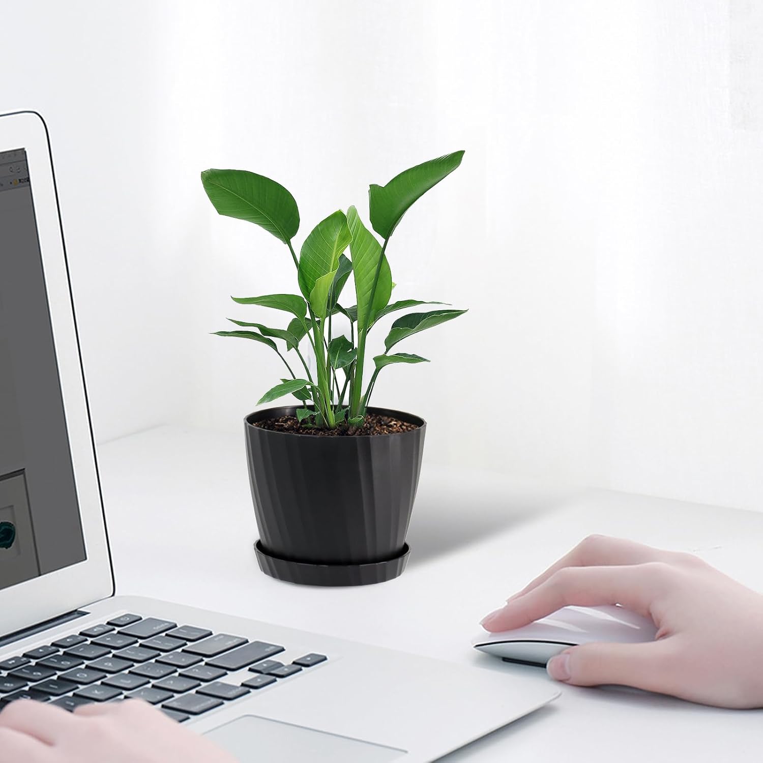 6 Inch Plant Pots Bulk, 6 Pack Plastic Planters with Drainage Holes and Saucers for Indoor Outdoor House Plants and Flowers, Black