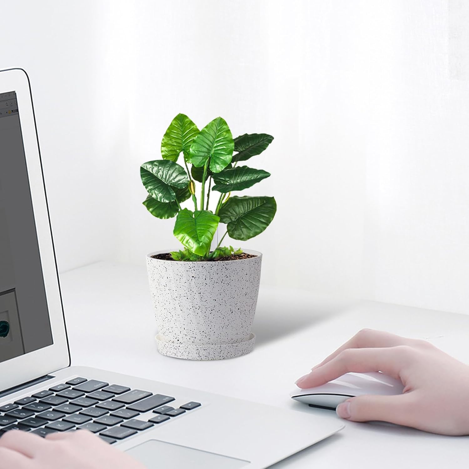 6 Inch Plant Pots Bulk, 6 Pack Plastic Planters with Drainage Holes and Saucers for Indoor Outdoor House Plants and Flowers,White Spots