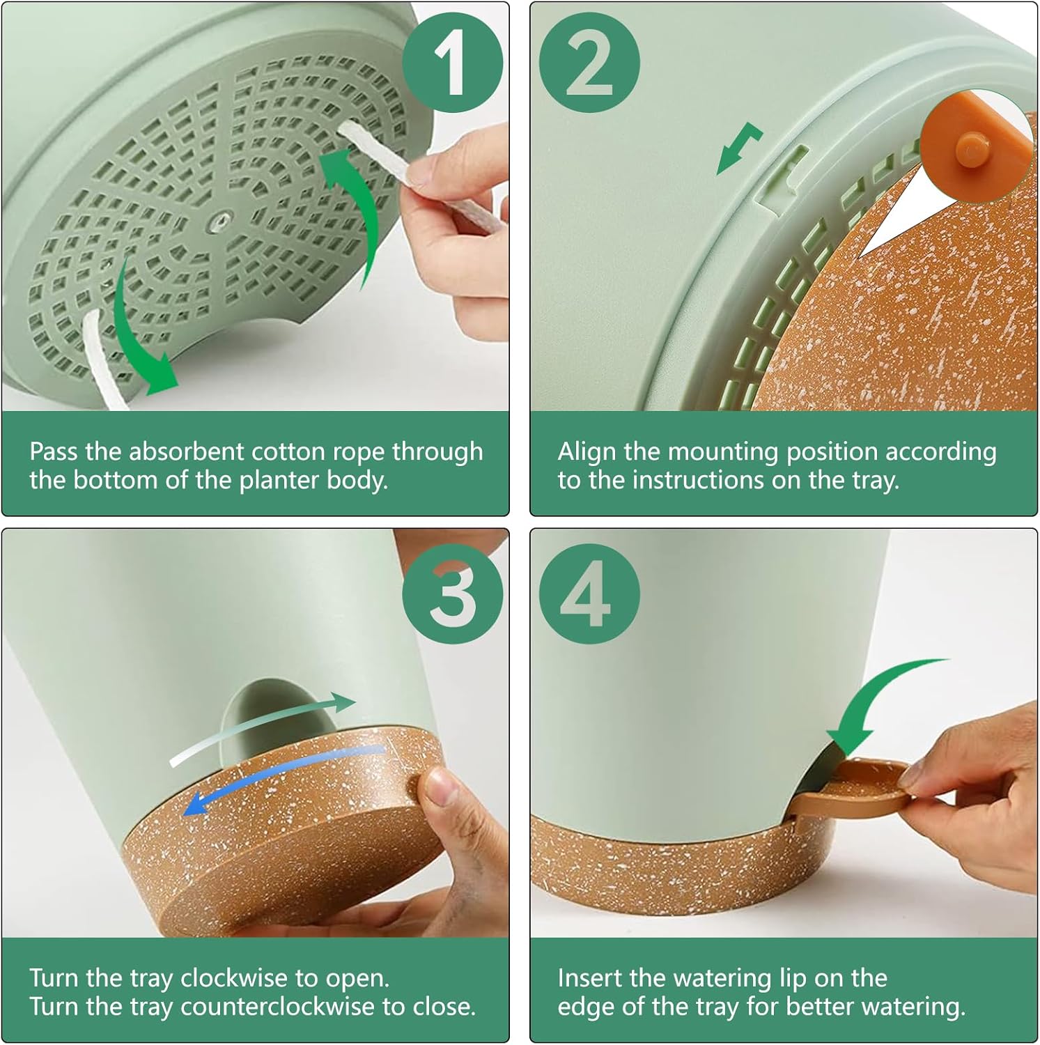 Self Watering Pots, Flower Planting Pots for Indoor Outdoor Plants, African Violet, Flowers, Succulent,Cactus Plant Pots with Drainage Holes Green Plastic Pots Gift Idea For Lazy people House Decor