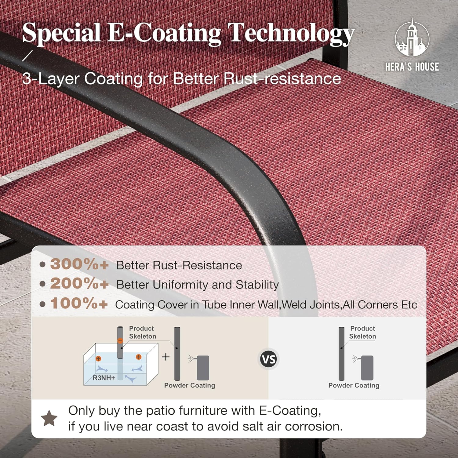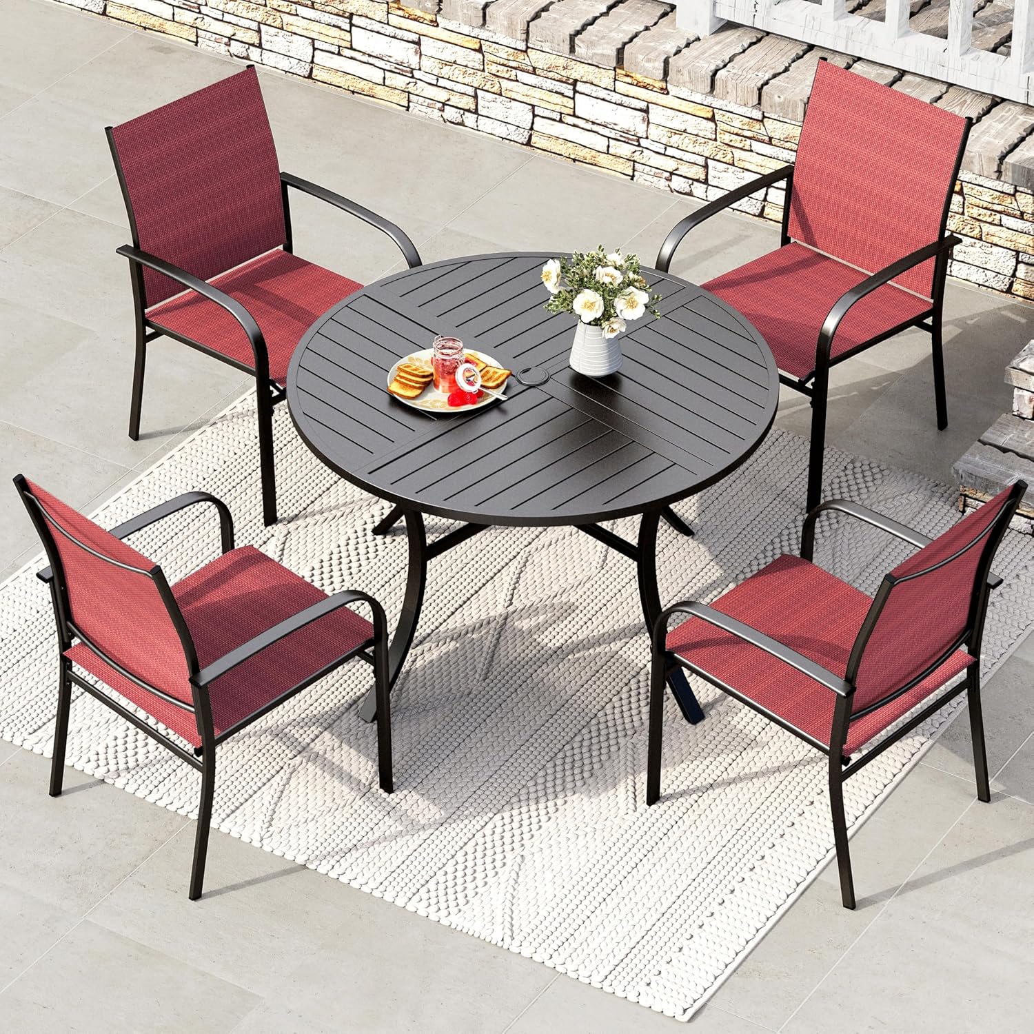 HERA'S HOUSE 5 Pieces Patio Dining Set, Patio Table and Chairs Set for 4, 4 x Red Textilene Dining Chair and 42" Metal Round Table for Lawn Garden Backyard Deck