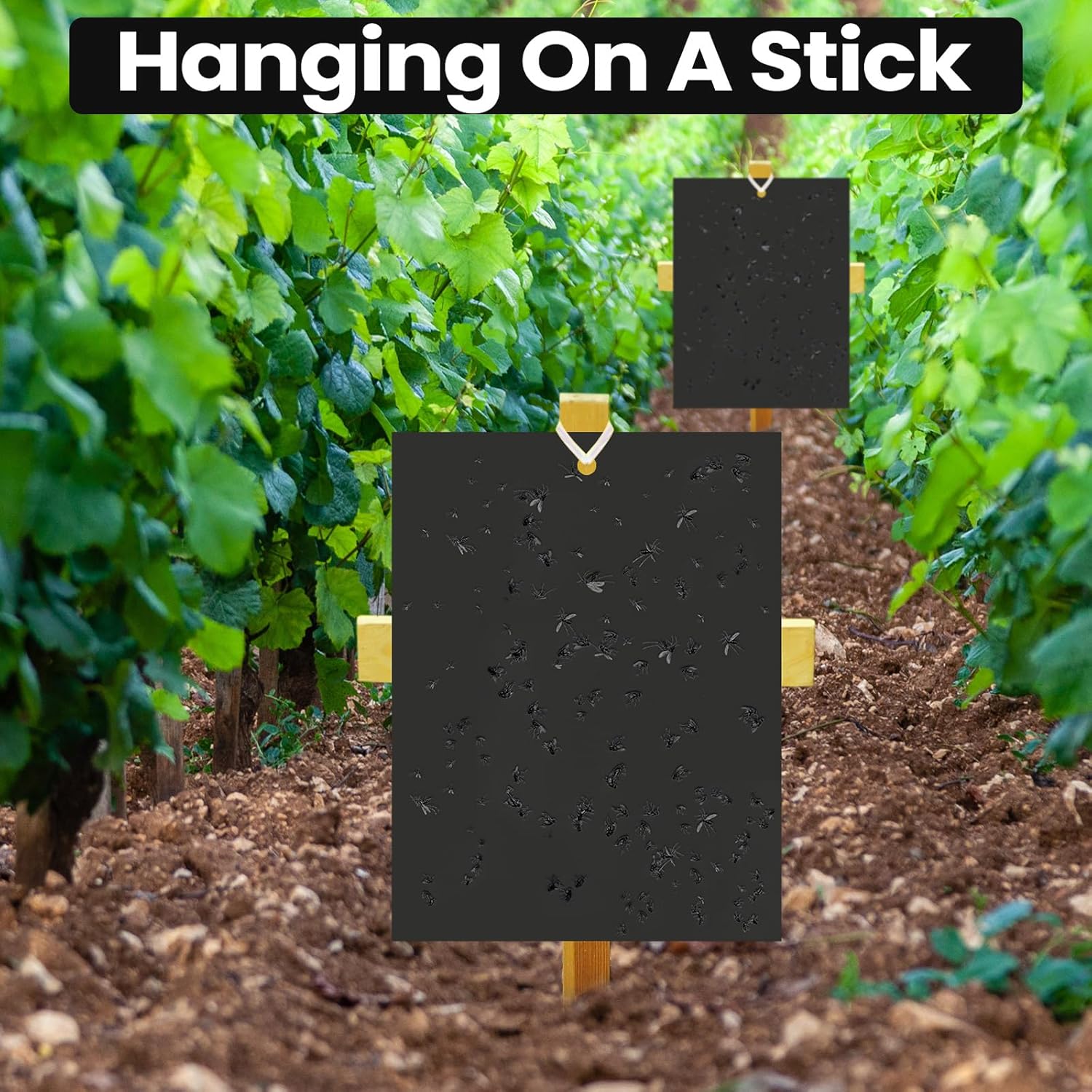 - Double Sided Stickiness: our black sticky traps are designed to be double sided, widely catch the most pests, includes white flies, leaf miners, fungus gnats, shore flies, midges, mosquitoes, and other flying insects, you can place them in the garden, lawn, yard, next to the trash can and so on