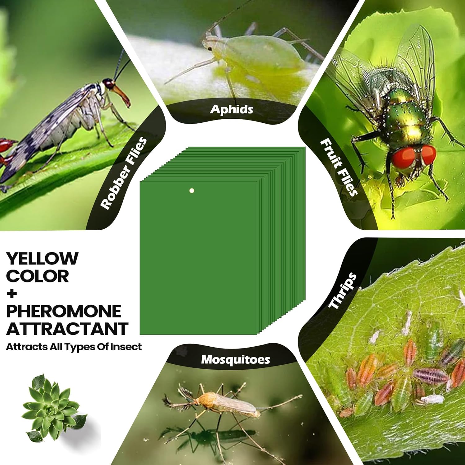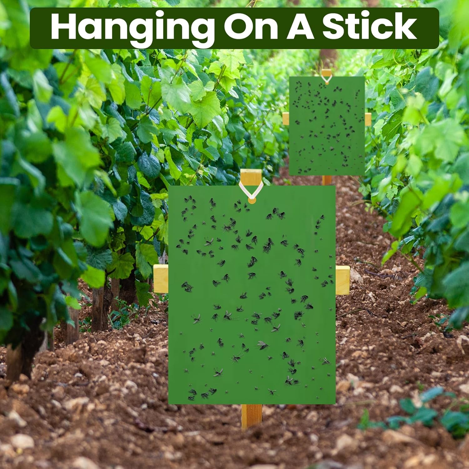 - Double Sided Stickiness: our green sticky traps are designed to be double sided, widely catch the most pests, includes white flies, leaf miners, fungus gnats, shore flies, midges, mosquitoes, and other flying insects, you can place them in the garden, lawn, yard, next to the trash can and so on