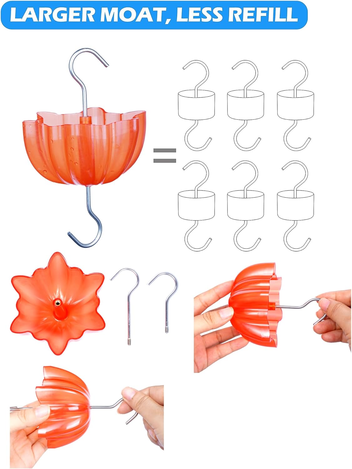 Ant Moat for Hummingbird and Oriole Feeders to Guard Against Ants Protecting The Sugar Nectar Water, Cleaning Brushes Included (Red 2 Pack)