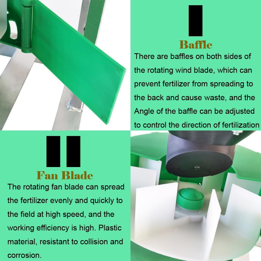 - Excellent Performance: The fertilizer output control handle has 16 gears. Adopts All-copper turbine variable speed motor, it is waterproof and powerful can be connected wtih both 12 V battery.which easily attaches to almost any ATV or tractor