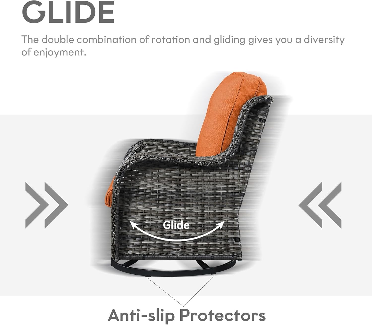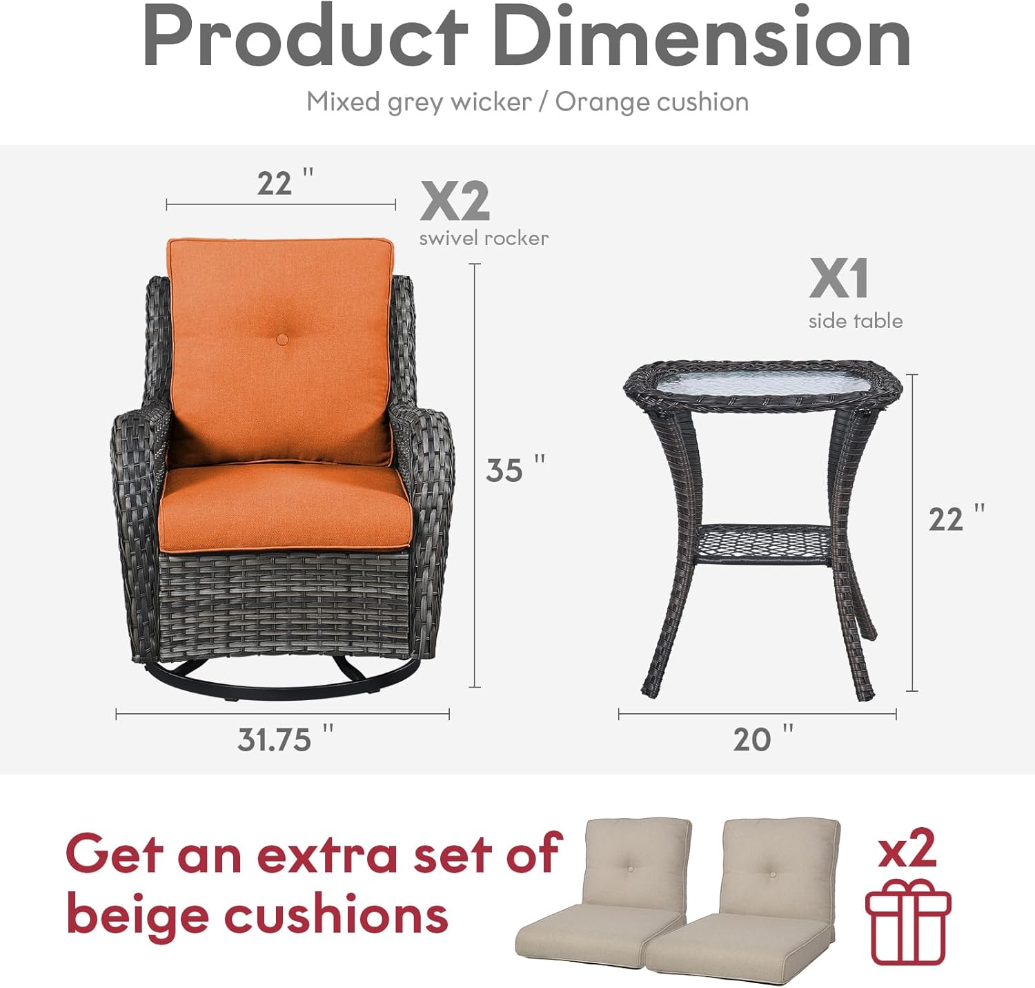 Outdoor Swivel Rocker Wicker Chairs Set of 3, High Back Swivel Patio Chairs Wicker Furniture Set, 2 PCS Rattan Swivel Rocking Chair with Side Table, Orange Cushion