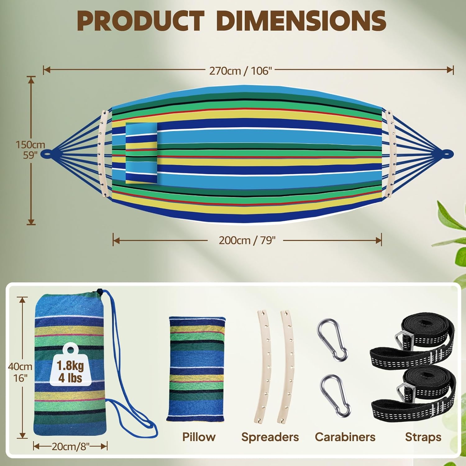 Chihee Cotton Hammock Large Soft Breathable Camping Hammock Holds Up to 660lbs Portable Tree Hammock with Detachable Spreader Bar Pillow 2 Strong Webbings 2 Carabiners Patio Garden Indoor Outdoor