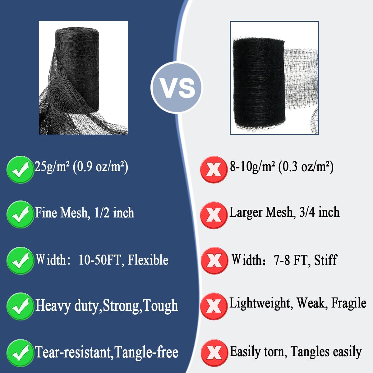- 1/2 In mesh size: The mesh holes small enough for birds, even the smallest hummingbirds, it allow water and sunlight to reach plants, do not harm plants or obstruct their growth. Additionally, Its tight fine mesh design also prevents birds, small animals, pets from getting tangled in the netting material, keeping them safe while protecting your garden. Our strong woven bird netting easy unfold, won't tear and tangled, with a load-bearing capacity exceeding 100 pounds.