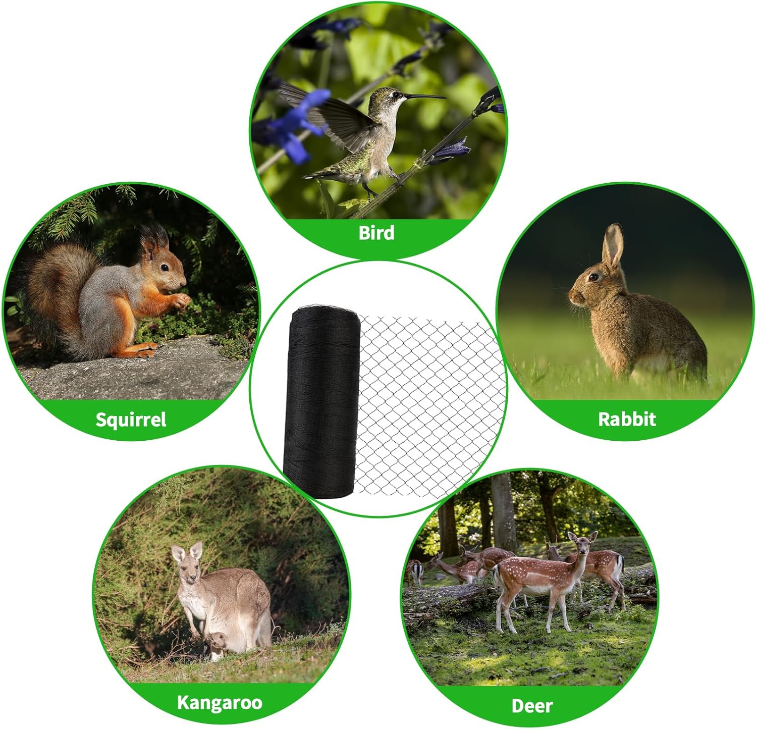 - Deer fence netting: Deer netting is a widely used for gardens, farms, and planting processes. Whether you're growing blueberries, strawberries, tomatoes, cherries, vegetables, flowers, or figs, berry, fruit trees, this deer net is perfect for your plants, protects your crops and harvest from hungry birds, squirrels, rabbits, and other small animals.