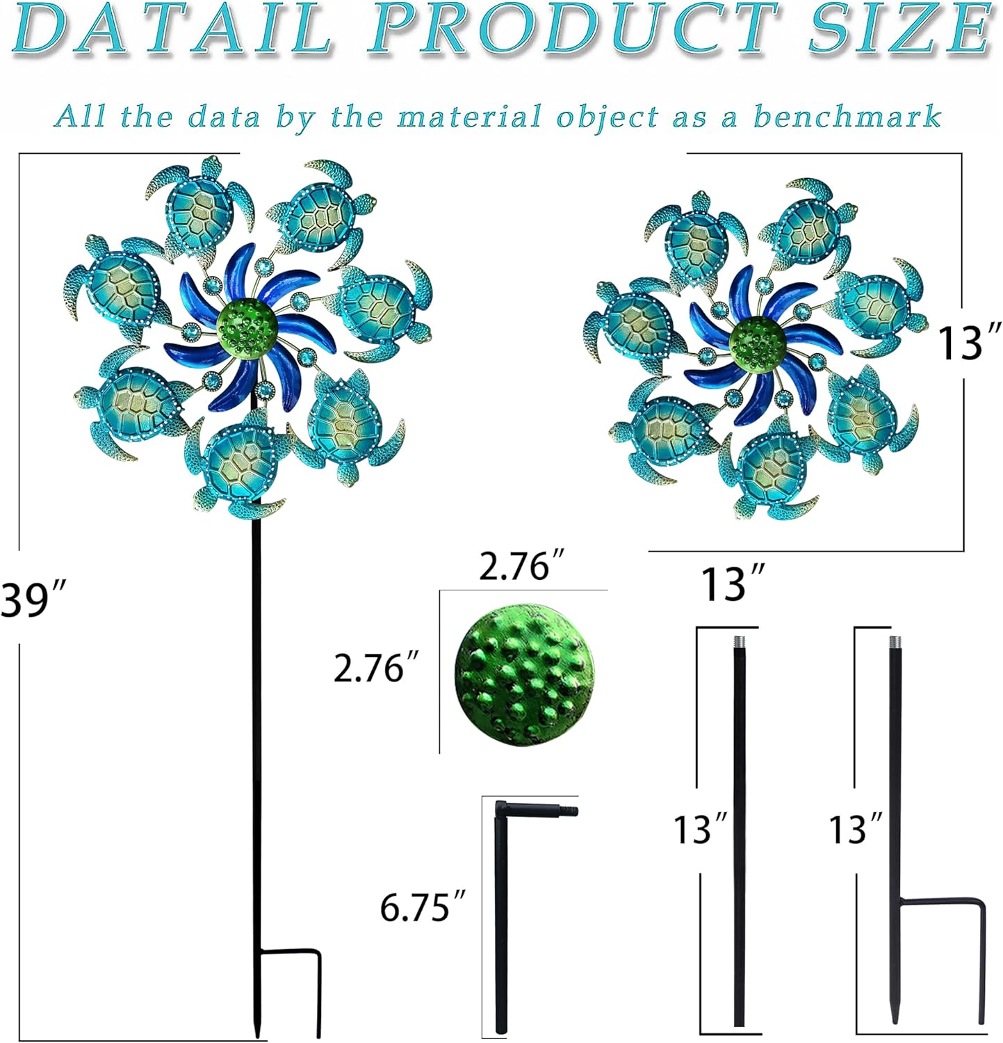 39" Sea Turtle Wind Spinners Garden Stake-Ocean Theme Outdoor Decorations- Metal Stake Yard Spinner-Wind Sculpture Yard Art Decorations for Patio,Swimming,Lawn & Garden Decor