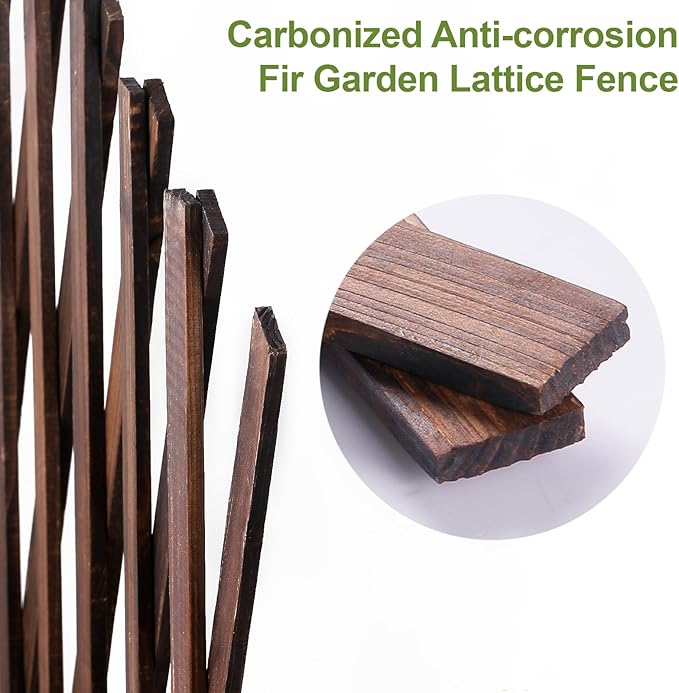 - 【Natural Wooden Trellis】: The carbonized lattice is waterproof, durable, and aesthetically pleasing, retaining the natural wood grain to enhance its visual appeal. Ideal for light climbing plants and decorative use, it suits a variety of settings such as balconies, gardens, courtyards, and both indoor and outdoor spaces, combining both function and style.