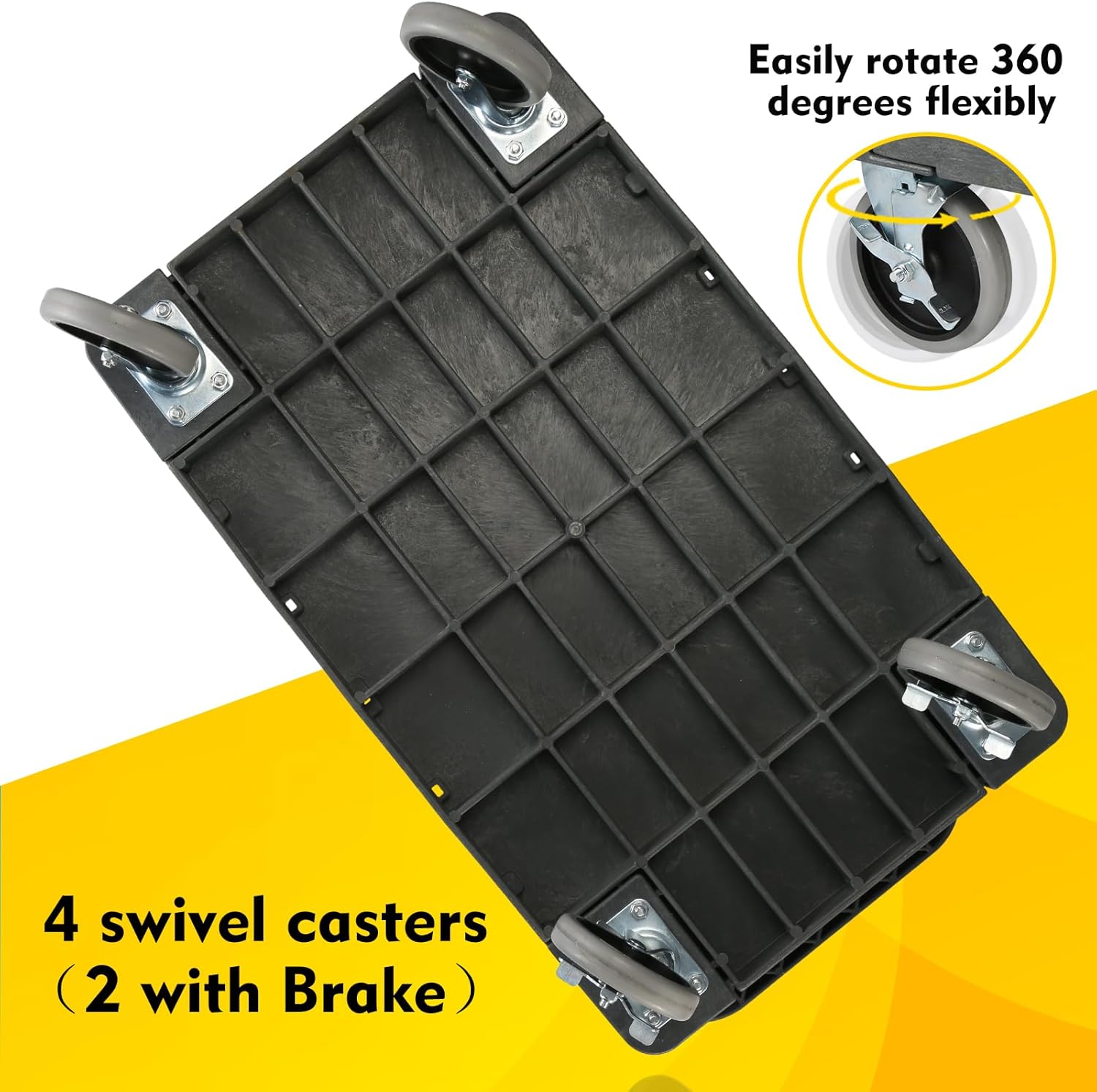 - 🔆 FLAT TOP DESIGN:The flat surface area provides enough space for oversized items, including bulky tools, equipment, and large boxes. Even weight distribution across the surface ensures that your items remain stable and secure during transport.