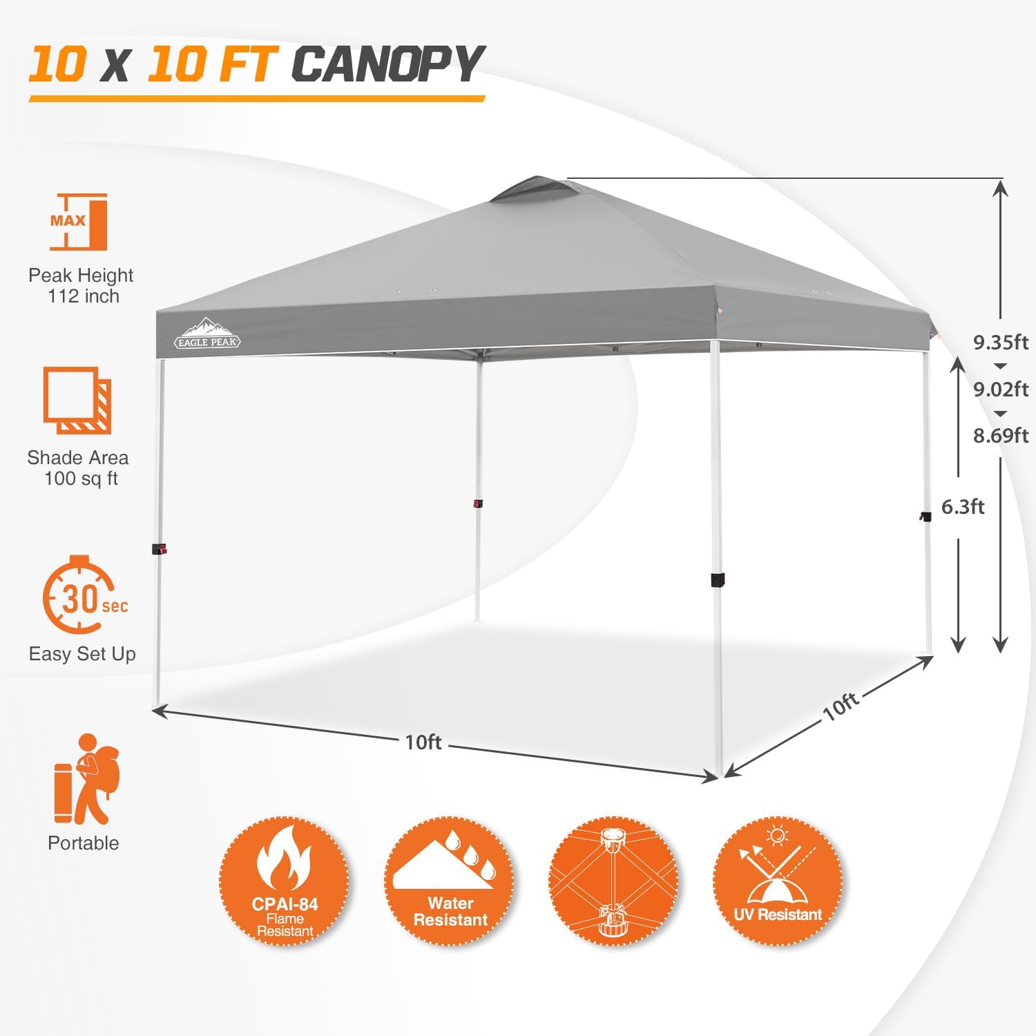 EAGLE PEAK Pop Up Canopy Tent with Wheeled Carry Bag, 8 Stakes, 4 Ropes, 4 Weight Bags, Easy Set Up Tent Canopy, 10x10 ft, 100sqft of Shade, Light Gray
