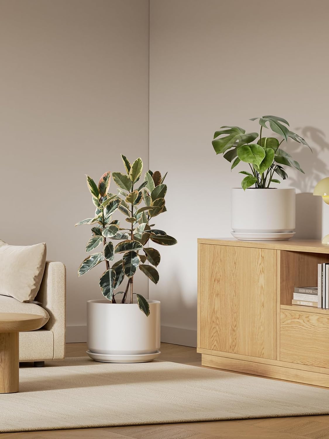 - Versatile 2-Pot Set: Includes 10″ and 12″ ceramic pots for plants—ideal plant pots for succulents, spider plants, fiddle-leaf figs, and more; perfect for layered displays on shelves, window sills, or garden nooks