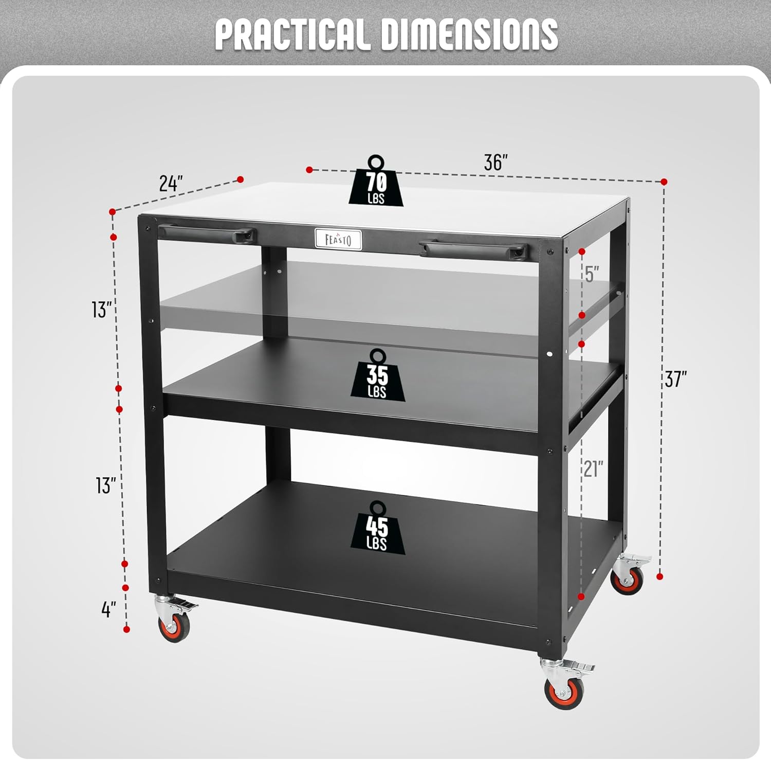 - Ample Space: The outdoor prep table has 3-Shelf design and it facilitates an ample space for food preparation or ideal location for pizza oven,serve you outdoor or indoor needs such as pizza oven stand table.It even meets the needs of commercial kitchens