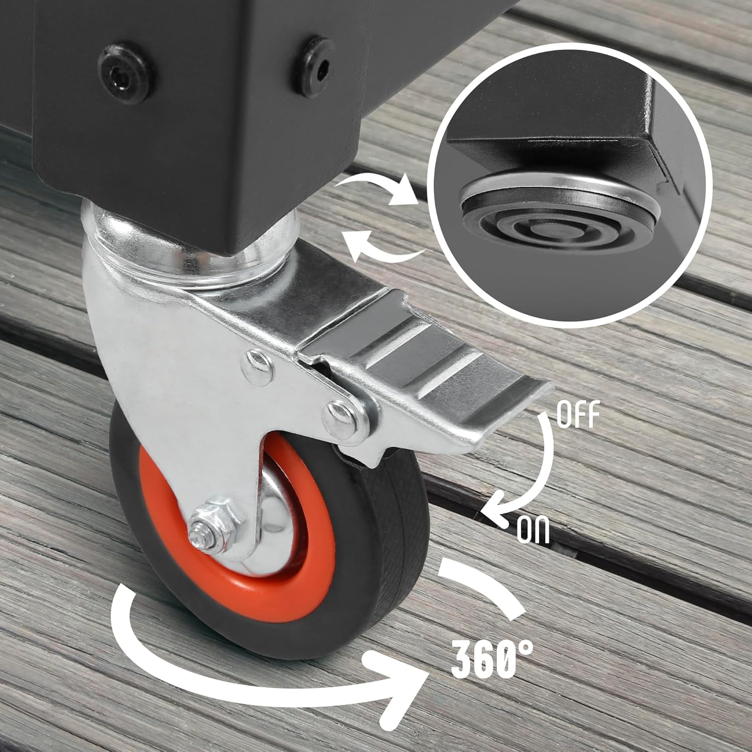 - Humanized Mobile Design: The 4 silent 360 degree rotating casters for smooth movement and the built-in foot brake will help you lock the table anywhere.They can be replaced with 4 stable feet (in our toolkit) when you decide to stabilize in a position