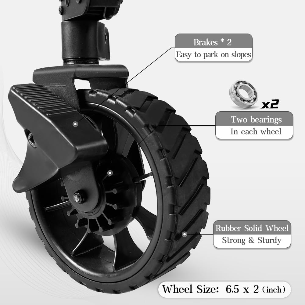- Two Brakes & Built-in Dual Bearings: Featuring silent, 360° rotating front wheels; Dual-bearing design The double bearing design makes smooth rolling on mud, grass, and sand; two brakes allow the wagon to stop smoothly on slopes