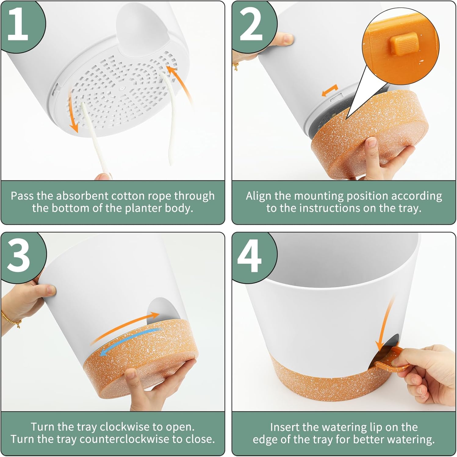 GARDIFE 10/9/8 inch Plant pots, planters for Indoor Plants, self Watering Plant Pot, Flower pots, White