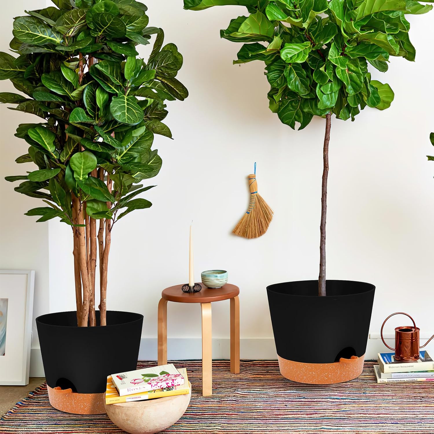 - 【Modern Simple Design】Pure black plant pot with brown bottom and matte finishing exterior, bringing out a modern minimalistic styled. the round planter pots are perfect for all small to medium-sized indoor house plants and herb spice gardens. Works well with orchid, cactus, succulents, aloe vera, basil, flowers, Peace Lily,air plants, snake plant.
