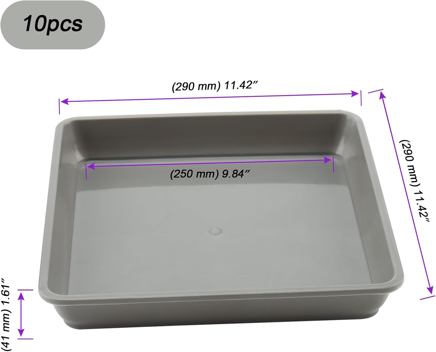 JOIKIT 10 PCS 11.4 x 11.4 Inch Square Plant Saucer, Plastic Plant Saucer Drip Tray, Square Flower Pot Tray for Indoors and Outdoor Plant Pots, 1.6 Inch Deep, Gray