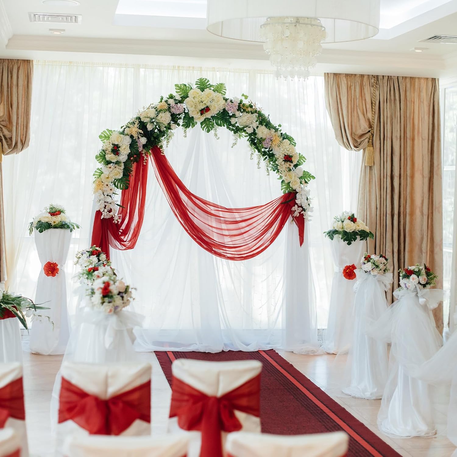 - Decorate with vibrant flowers, tulle, balloons, foliage, lights or anything else to create a beautiful arch backdrop stand.