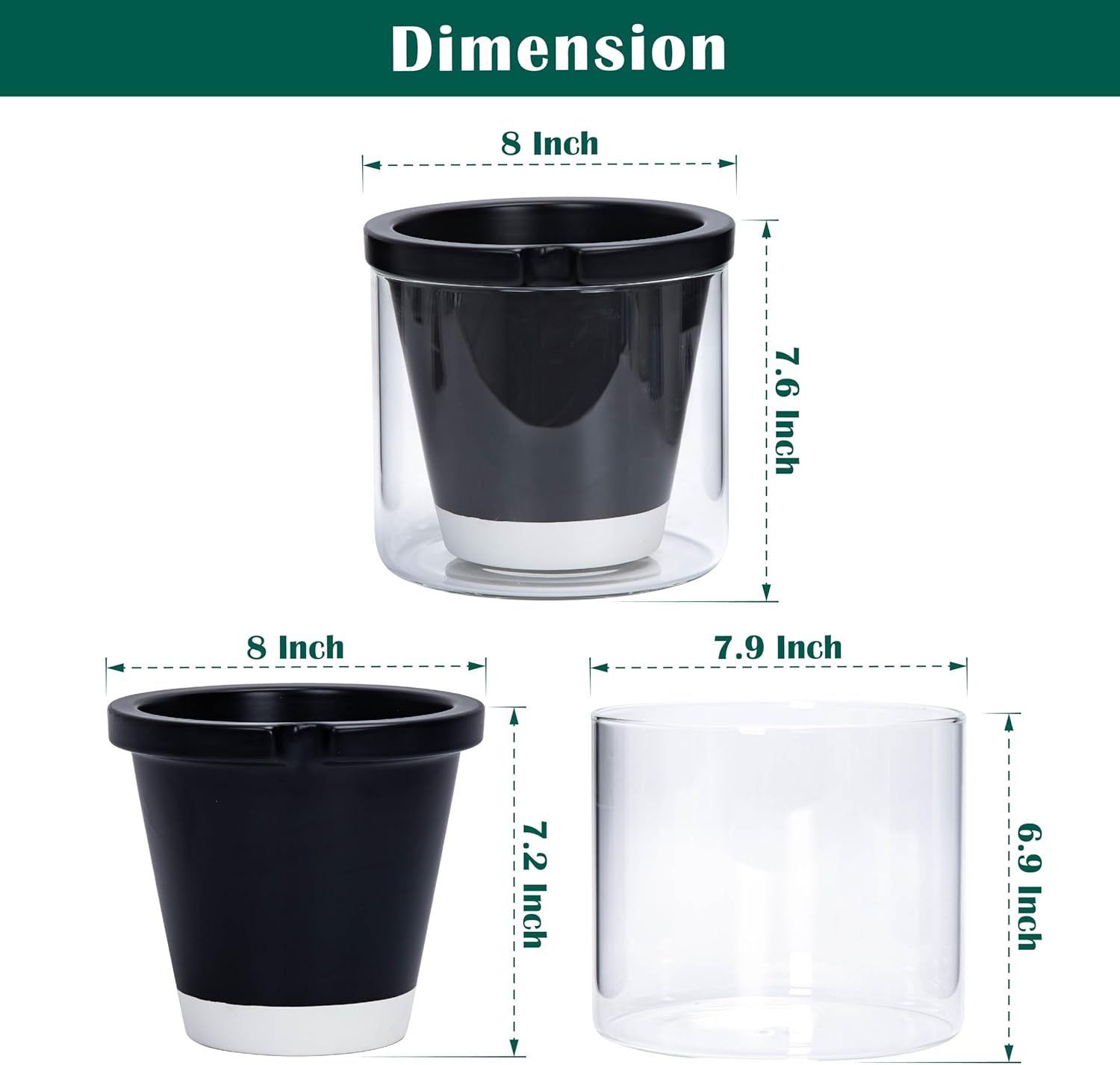 - What’s Included: Each set comes with a black terracotta pot and a clear glass cup. (Plants Not Included) It is perfect for planting herb, aloe, small spider plant and so on.