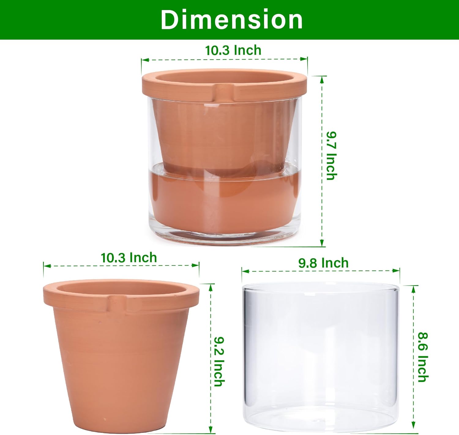- Size & Dimension – Overall: 10.3" outer diameter and 9.7" height; terracotta pot: 10.3" diameter * 9.2" height; Handcrafted terracotta pot with slightly size variation.