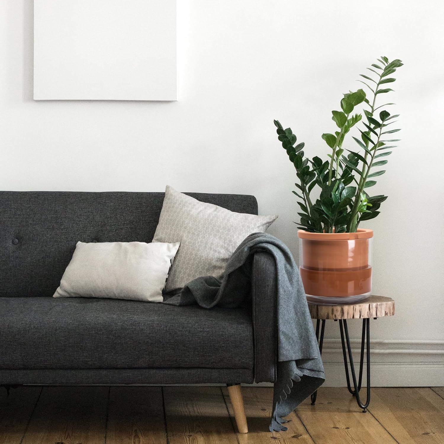 - Terracotta + Glass: Elegant modern design self watering plants pot with ingenious natural breathable terra cotta material and clear glass container. See the water surplus just from a glance.