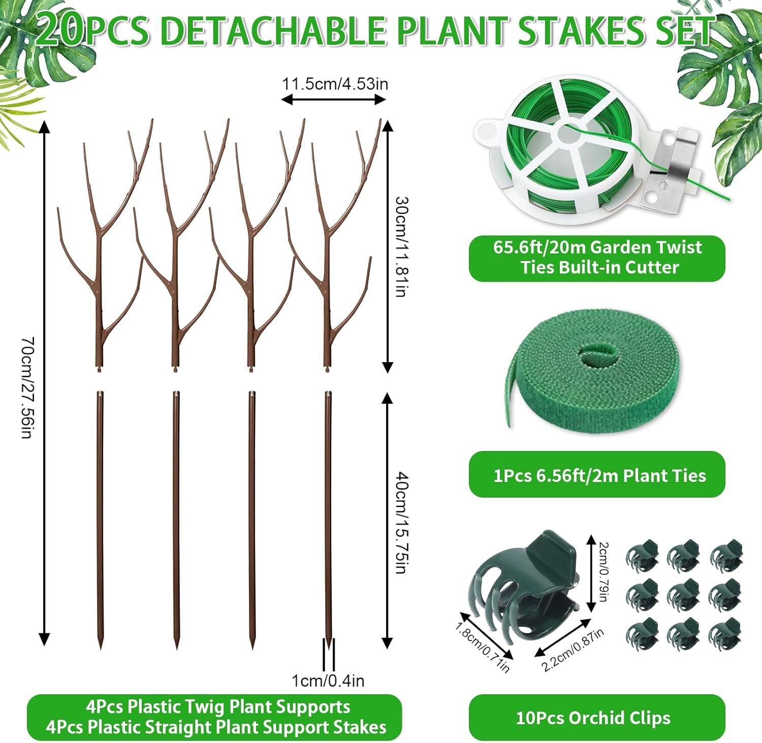 - 【20Pcs Twig Plant Support Stakes Set】You will get 4Pack 27.56inch/70cm Twig Plant Support Stakes(4Pcs Twig Plant Supports +4Pcs Straight Plant Support Stakes), 10Pcs Orchid Clips, 65.6ft/20m Garden Twist Ties with Built-in Cutter, 6.56ft/2m Plant Ties. No more need to buy additional accessories when you train your climbing plants. ROADPLUMP Plant Trellis Kit is the perfect partner for your plant growth needs.