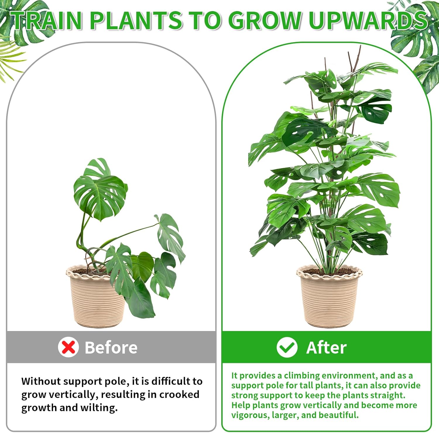 - 【Suitable for Most Indoor and Outdoor Plants】Plant stake is the ideal support for various climbing plants. It is suitable for climbing plants, vines, shrubs, and flower arrangements. Such as Pothos, Money, Monstera, Philodendron, Begonia, Hoya, Ivy, Orchid, Pull Clematis, Morning Glory, Lily, Peony, etc. These plant pole supports help creeping plants with aerial roots grow vertically toward the light, mimicking their natural environment, and making them thrive under natural light.