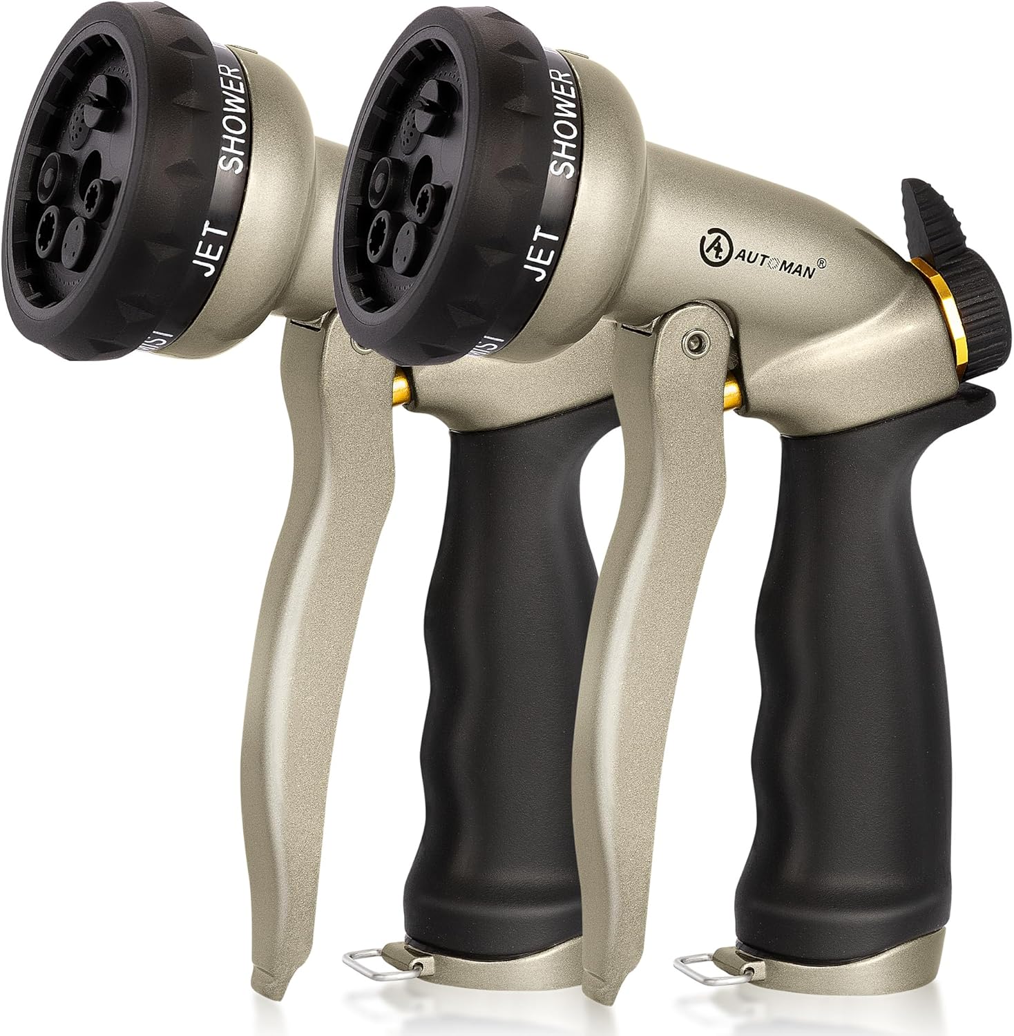 AUTOMAN Garden Hose Nozzle-7 Patterns Sprayer-2 Pack, Metal High Pressure Spray Nozzle, Heavy Duty Labor-Saving Design Water Hose Nozzle for Garden Watering, Car Washing, Window Cleaning, Pets Bathing