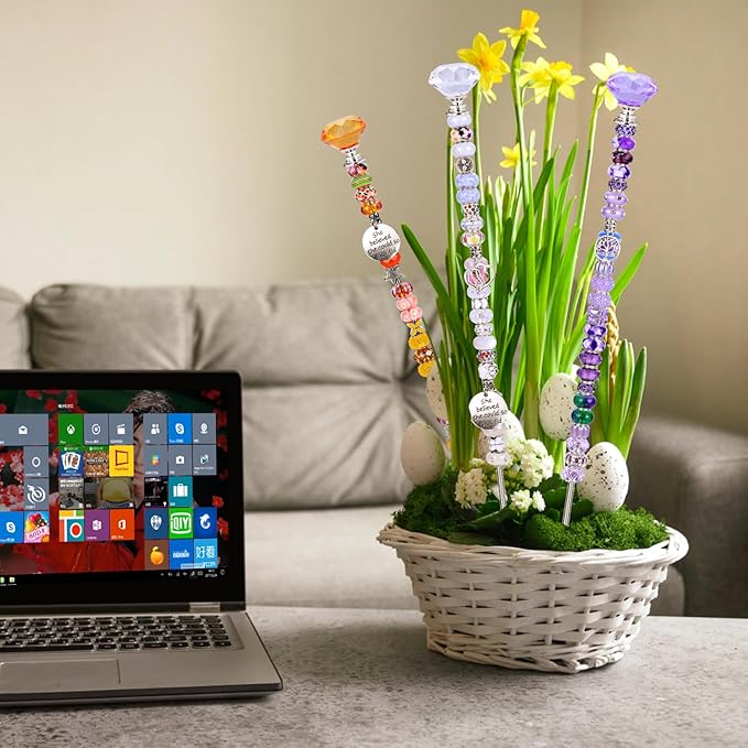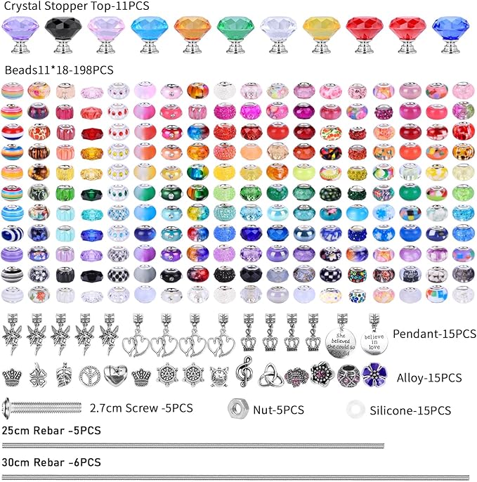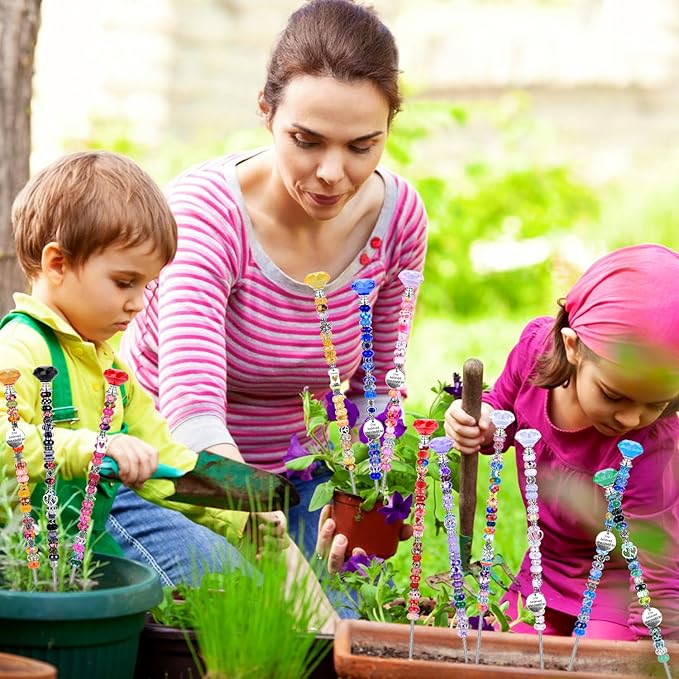 AIPRIDY 275 Pcs DIY Fairy Wand Garden Stakes Kit,Multiple Color Scheme European Beads Crystal Diamond Tops and 12 or 10 Inch Threaded Rods,Stainless Steel Stakes with Diamond Toppe(Rainbow)