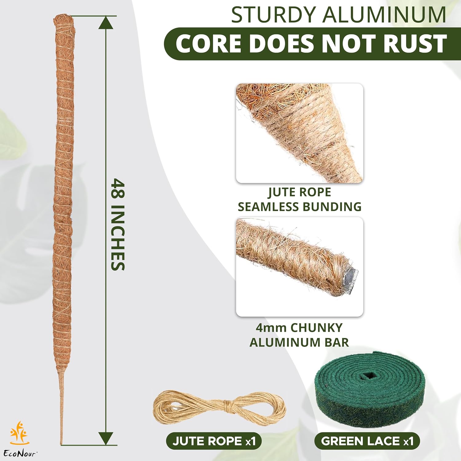 - Helps Plants to Grow Upwards: EcoNour Bendable Moss Poles are made from natural fiber material extracted from the husk of coconuts, which is perfect for attaching new air roots and helping plants maintain water and nutrients. Enhance the growth of monstera plants.