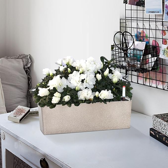 GardenBasix Elongated Self Watering Planter Pots Window Box 5.5 x 16 inch Indoor Home Garden Modern Decorative Planter Pot for All House Plants Flowers Herbs (Coffee,1-Pack)