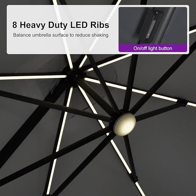 - Sturdy Aluminum Frame: Powder coated all-aluminum umbrella bones and 8 heavy-duty ribs, anti-oxidation spray painted, maintain a long period life
