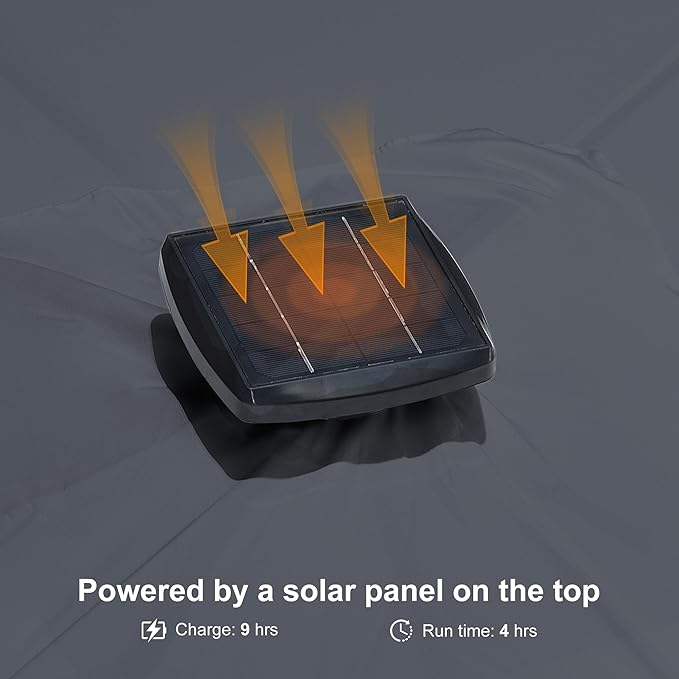 - Solar LED Outdoor Umbrella: Comes with led lights that is powered by a solar panel on top, helps light up a relaxing night and last for 4 hours