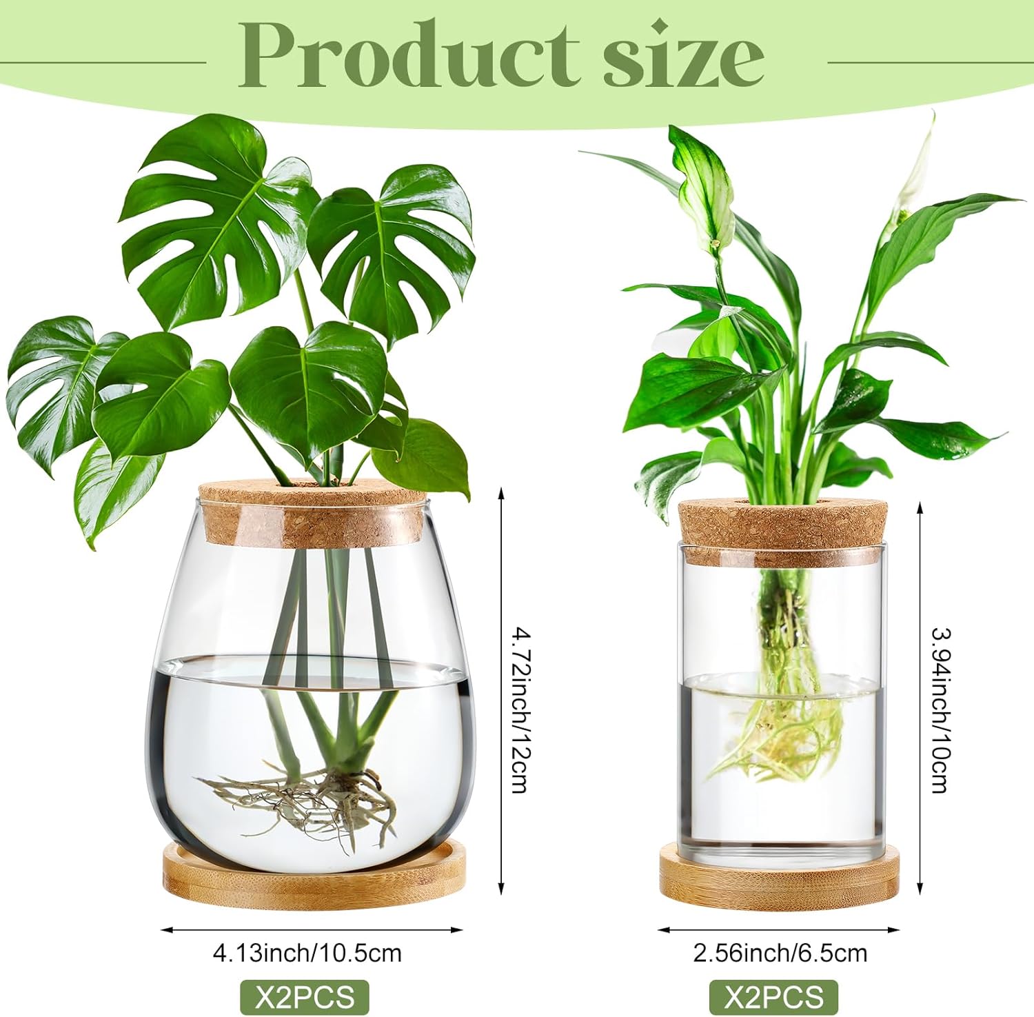 - Use with Confidence: these propagation vases for plants are mainly made of high boron silicon heat resistant glass, not easy to break or deform, with hole plugs and bamboo tray bases, offering a long service time