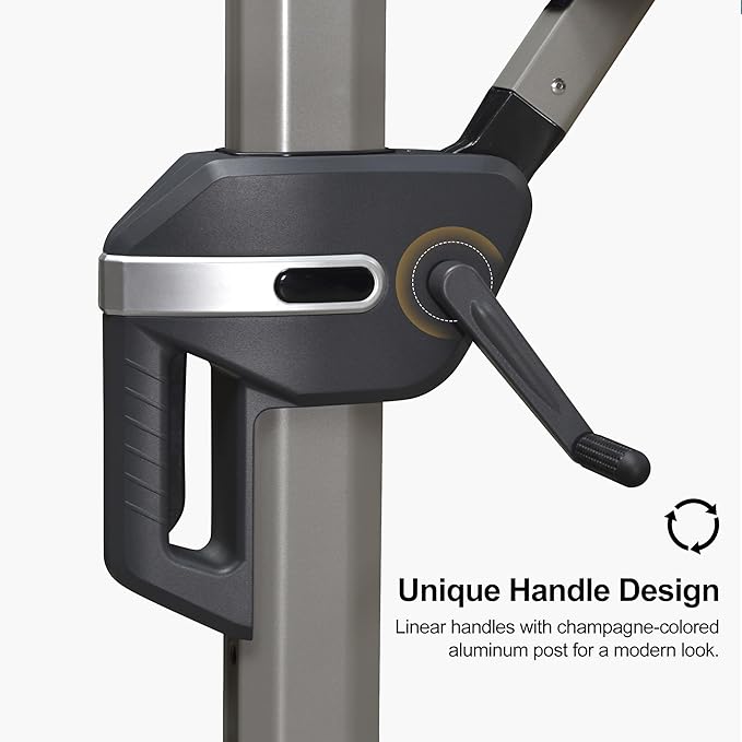 - MULTI-FUNCTION ADJUSTMENT: The patio umbrella can be easily rotated horizontally 360° with the foot pedal design. The aluminum handle and 5 height adjustable tilt operating system can change the angle of the canopy to provide better sun coverage.