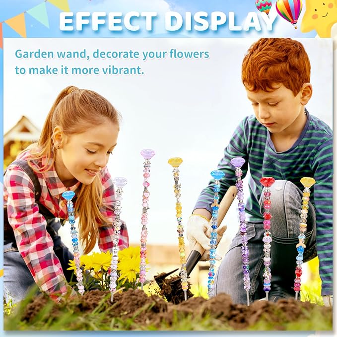 AIPRIDY DIY Fairy Wand Garden Beads Stakes Wands Kit,Multiple Color Scheme European Beads Crystal Diamond Tops and 12 or 10 Inch Threaded Rods,Stainless Steel Stakes with Diamond Toppe(Six Color)
