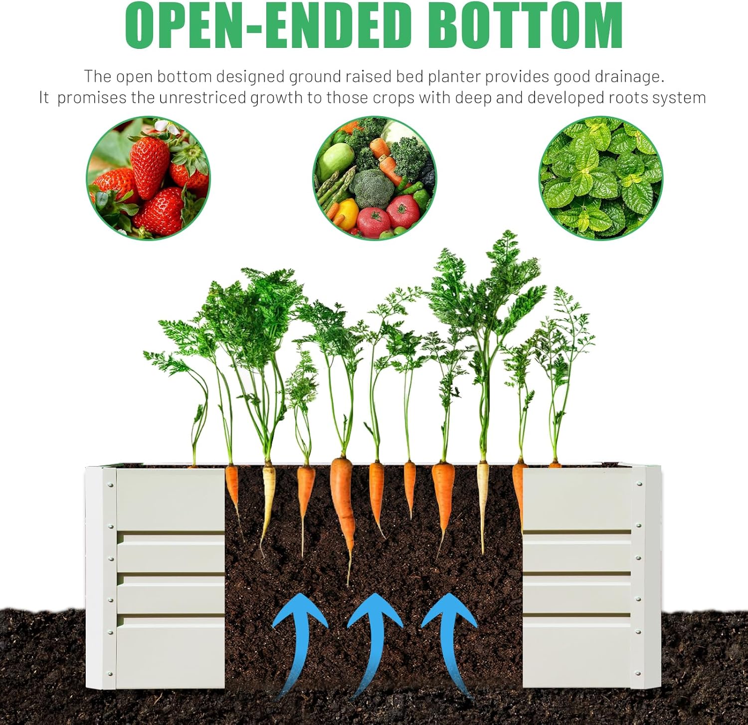 - OPEN BOTTOM: The open bottom designed ground raised bed planter provides good drainage. What's more, it also promises the unrestriced growth to those crops with deep and developed roots system, allow roots to better absorb nutrients.