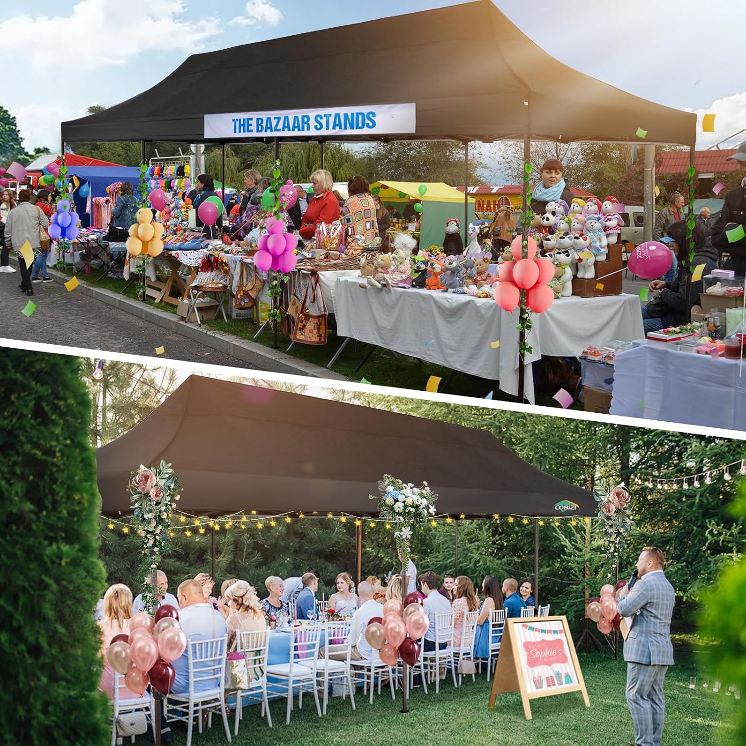 COBIZI 10x30 Pop Up Canopy Tent Heavy Duty with 8 Removable Sidewalls, Commercial Portable Tents for Parties Ez Up Canopy All-Weather Windproof & Waterproof and UPF 80+ Wedding Tent Sun Shelter