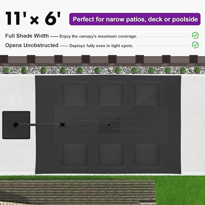 - Left-right Tilt: The easy-tilt system allows you to adjust the canopy angle up to 60° to the left or right, keep the shade as the sun moves throughout the day