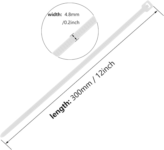 - 【Zip Tie Details】 Specifications Length: 12in | Width: 0.18in | Maximum Diameter: 3.2in | Tensile Strength: 50 Lbs | Color: Black | Quantity: 1,000 Packs, So You Don'T Have To Worry About Running Out Mid-Project