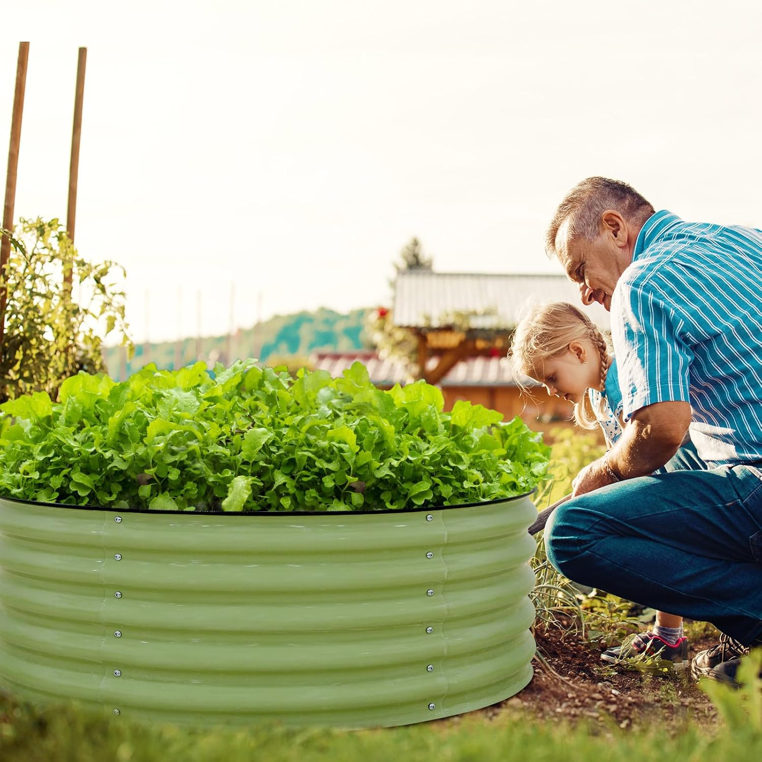 EAGLE PEAK 42'' Round 17'' Tall Raised Garden Bed Planter, Outdoor Galvanized Metal Planter Box for Vegetables, Flowers, Herbs, Olive Green