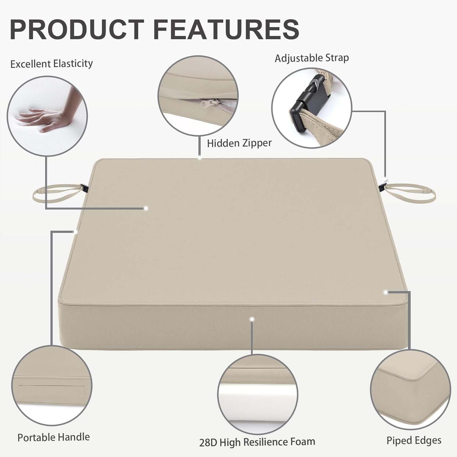 Favoyard Patio Chair Cushions 18.5 x 16 x 3 Inch Waterproof Outdoor Seat Cushions for Patio Furniture 3-Year Color Fastness Garden Sofa Couch Chair Pads with Handle & Adjustable Straps Set of 2, Beige