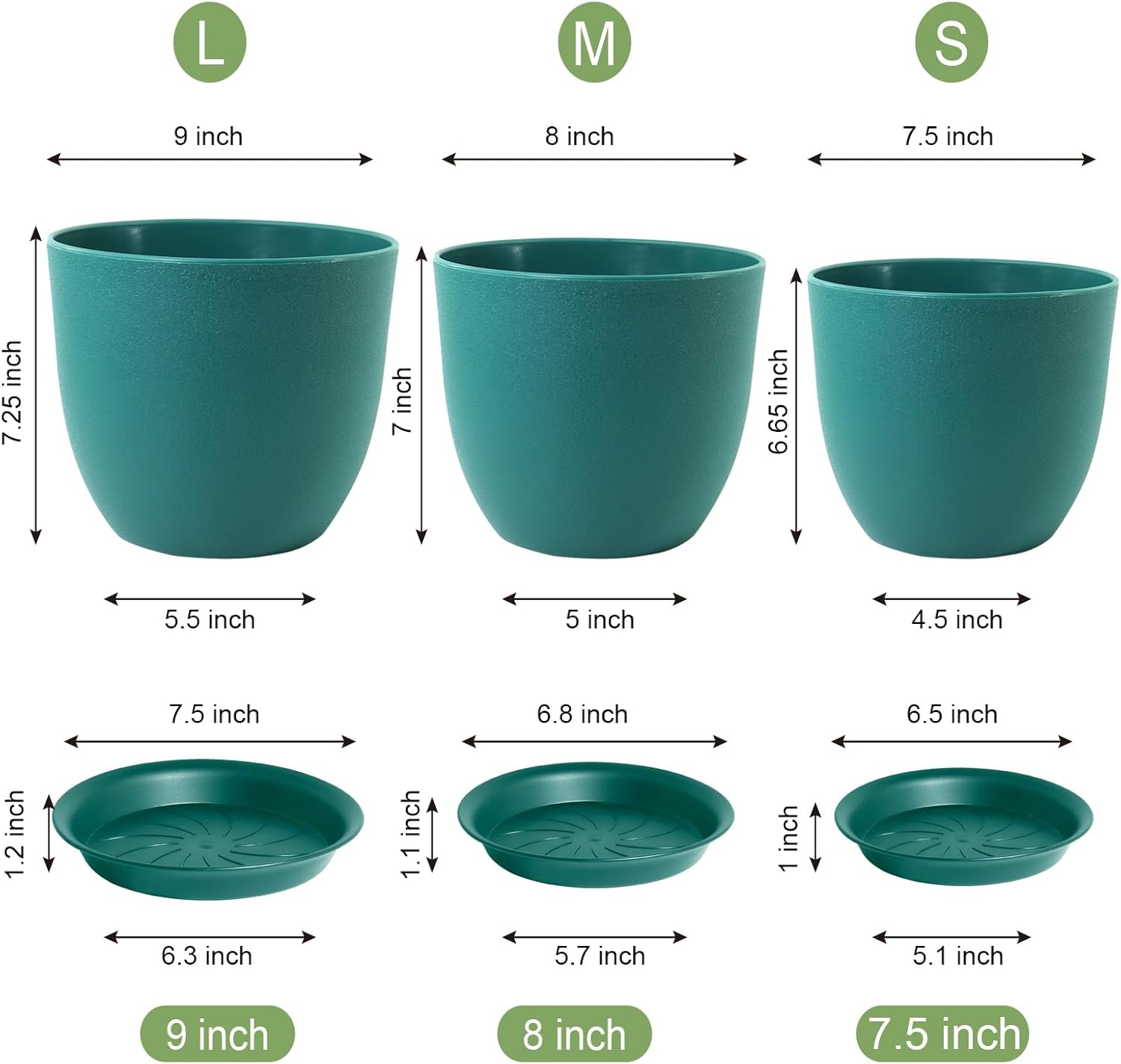- [3 Size Combo] Set of 3 planters in different colors and sizes: Large (9''D7.25'H), Medium (8''D7''H), Small (7.5''D*6.65''H). Perfect for any home or office plant, opening up your living space. Ideal for transplanting medium or large indoor plants.
