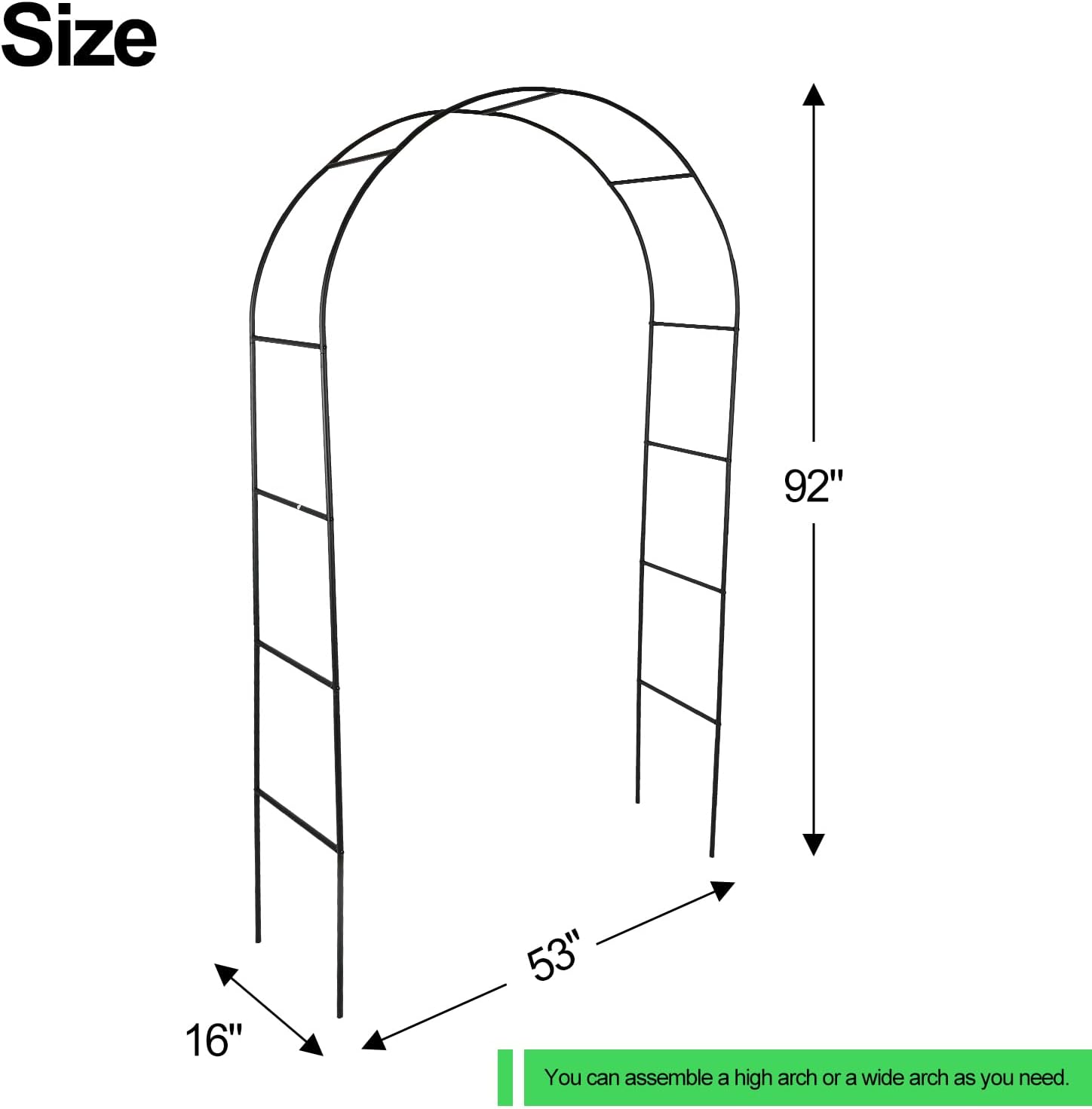- Assembly Dimensions: You can easily assemble a wide arch( 4.5 Feet Wide x 7.8Feet High) . It is suitable for a variety of spaces. Our metal arch is mainly designed as an eye-catching decoration on garden, yard, patio or park.