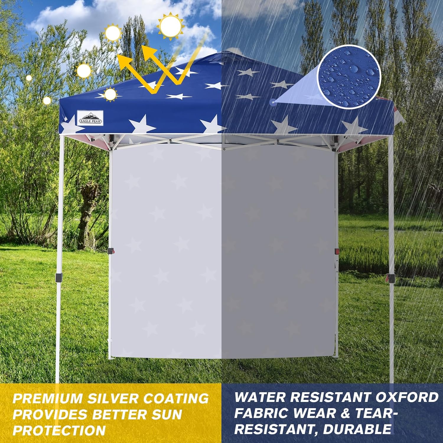 EAGLE PEAK Pop Up Canopy Tent with 1 Sidewall, Easy Setup Event Tent, Outdoor Sun Shade, Wheeled Carry Bag, Stakes and Guy Ropes, Instant Canopy 6.6x6.6, American Flag