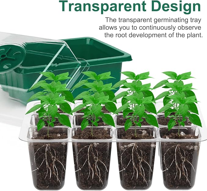 - š±ćVisible Clear Design & Handy Drain Holesć: The lid and seedling tray are transparent. It allows you to look at the growth of seed roots from different angles. At the same time, each cell has a hole at the bottom, which allows excess water to seep out and prevent the seeds from being over-watered. This is the starting point for the best seed growth.