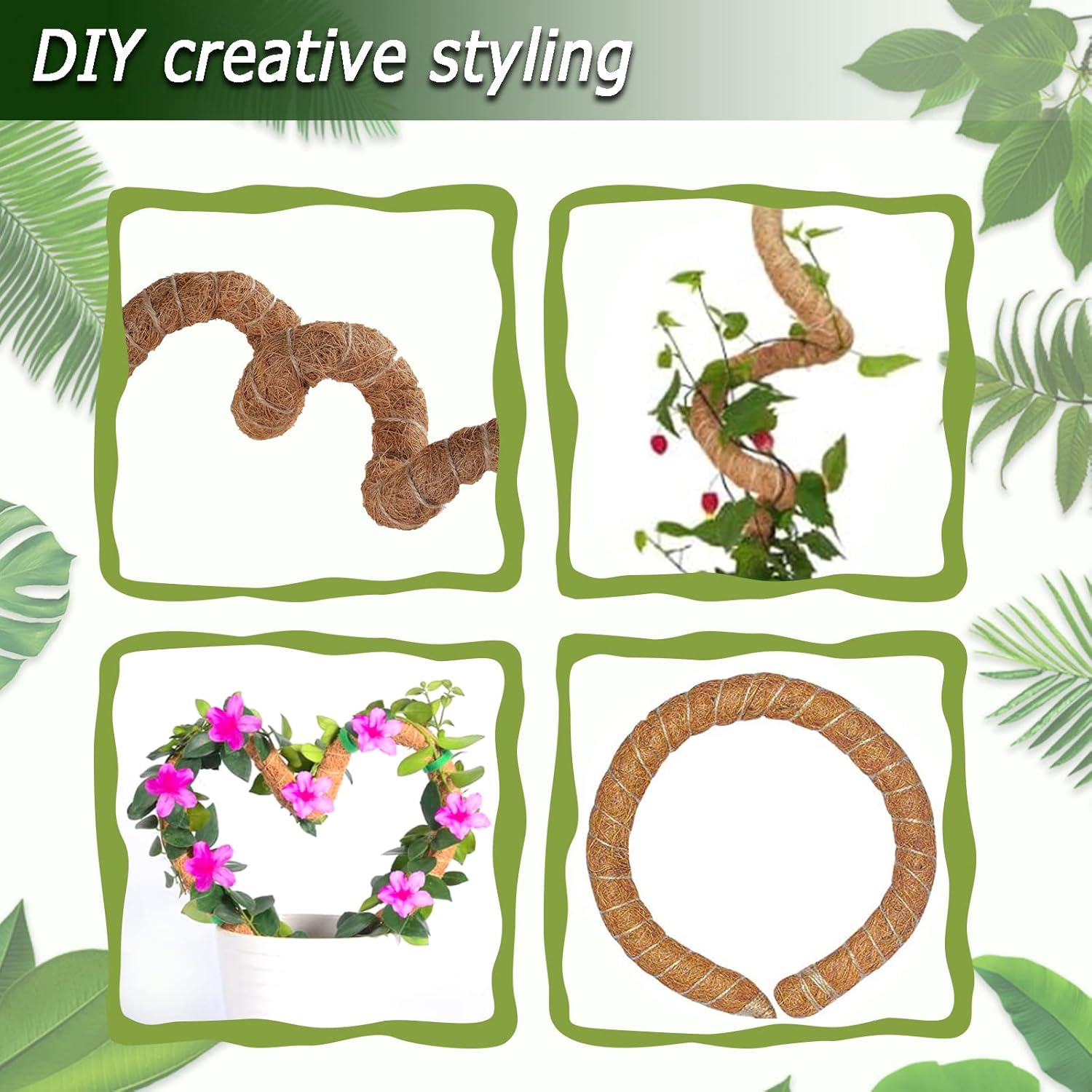 - EASY TO USE--Bend the moss pole into the shape you like: heart, arch, snake, spiral ..... Then insert the handle of the moss pole deeply into the soil, and finally just tie the climbing plant stems to the indoor potted plant pole with twine.